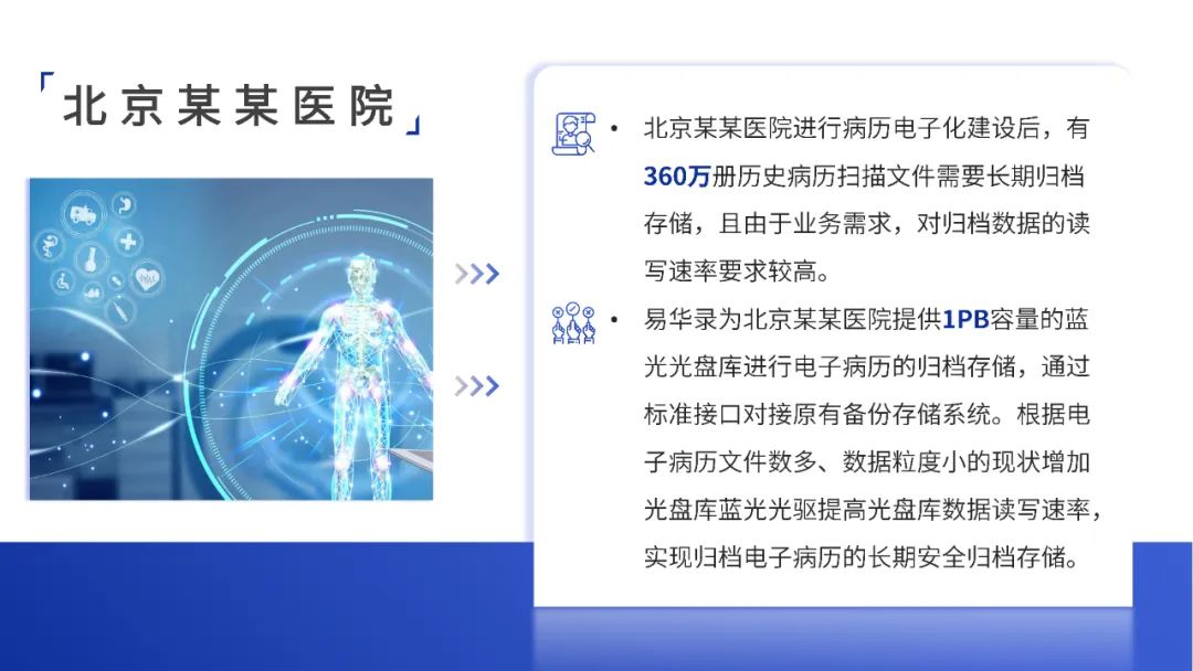·³¤Ð§´æ´¢ÄÑ£ºÆ¾Ö¤Ïà¹ØÖ´ÂÉÀýÔò»®¶¨£¬Ò½ÁÆ»ú¹¹ÃÅÕﲡÀúÉúÑÄÆÚ²»µÃÉÙÓÚ15Äê;סԺ²¡ÀúÉúÑÄÆÚ²»µÃÉÙÓÚ30Äê;Ò½ÁÆÎïÀí½ºÆ¬ÖÁÉÙÒªÉúÑÄ5Äê¡£Ò½ÔºÖÖÖÖÐÅÏ¢¹¦Ð§Ä£¿éÔöÌí£¬CT¡¢MRI¡¢³¬Éù¡¢DSA µÈ×°±¸ÌìÌ챬·¢¼¸Ê®ÍòÕÅKB¼¶Ð¡Îļþ£¬Ã¿ÄêÎļþÊýÄ¿´ïÉÏÒÚ¹æÄ££¬½ÓÄɹŰ崿´¢·½·¨Ê¹µÃµ×²ã´æ´¢¼Ü¹¹ºÍÔËά¼Ü¹¹Ô½À´Ô½Öش󣬲»¿ÉÖª×ãÒ½ÁÆÊý¾Ý³¤Ð§´æ´¢µÄÒªÇó¡£