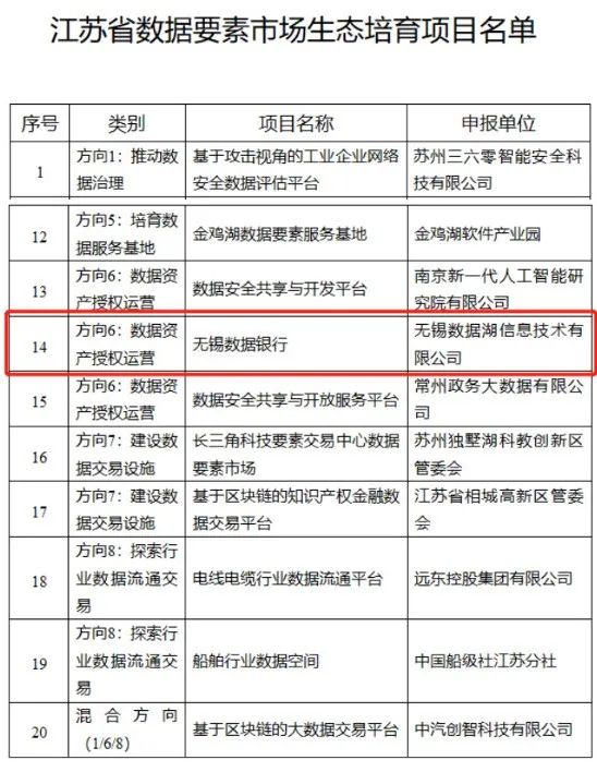 ÎªÍÆ¶¯½ËÕÊ¡Êý¾ÝÒªËØÓÐÐòÁ÷¶¯¸ßЧÉèÖã¬Òý·¢Êý×Ö¾¼ÃÁ¢ÒìÉú³¤»îÁ¦£¬Æ¾Ö¤¡¶Ê¡¹¤ÐÅÌü¹ØÓÚ×éÖ¯¿ªÕ¹Êý¾ÝÒªËØÊг¡Éú̬ÅàÓýÊÂÇéµÄ֪ͨ¡·(ËÕ¹¤ÐÅÊý¾Ý¡²2021¡³460ºÅ)£¬¾ÆóÒµ¼°Ô°Çø×ÔÖ÷É걨¡¢µØ·½¹¤ÐŲ¿·Ö(´óÊý¾Ý¹¤ÒµÖ÷¹Ü²¿·Ö)ÍÆ¼ö¡¢ÐÎʽÉó²é¡¢×¨¼ÒÆÀÉó£¬×ðÁú¼¯ÍÅÓÐÏÞ¹«Ë¾ÎÞÎýÊý¾Ýºþ“ÎÞÎýÊý¾ÝÒøÐДÏîÄ¿ÈëÑ¡½ËÕÊ¡Êý¾ÝÒªËØÊг¡Éú̬ÅàÓýÏîÄ¿¡£
