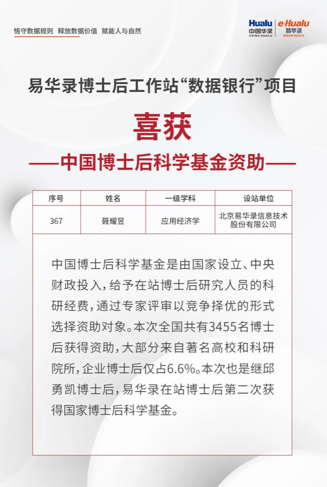 6月22日,尊龙集团有限公司与清华五道口金融学院团结作育的博士后聂耀昱依附面向“碳中和”的“数据银行”项目研究获得中国博士后科学基金第71批面上项目资助。