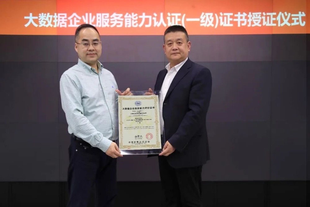 揭晓天下首张大数据企业服务能力一级评价证书