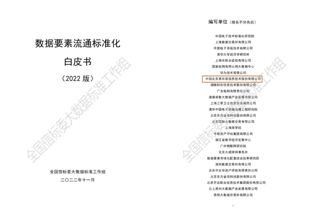 11ÔÂ25ÈÕ£¬2022È«ÇòÊýÉÌ´ó»áÔÚÉϺ£¿ªÄ»£¬»áÉÏÖØ°õÐû²¼ÁË¡¶Êý¾ÝÒªËØÁ÷ͨ±ê×¼»¯°×ƤÊé¡·(ÒÔϼò³Æ“°×ƤÊé”)¡£°×ƤÊéÓÉÖйúµç×ÓÊÖÒÕ±ê×¼»¯Ñо¿Ôº¡¢ÉϺ£Êý¾ÝÉúÒâËùÓÐÏÞ¹«Ë¾¡¢Ç廪´óѧ¾¼ÃѧÑо¿Ëù¡¢ÉϺ£ÊÐÍŽáÕ÷ÐÅÓÐÏÞ¹«Ë¾¡¢¹ú¼ÒµçÍøÓÐÏÞ¹«Ë¾´óÊý¾ÝÖÐÐÄ¡¢»ªÎªÊÖÒÕÓÐÏÞ¹«Ë¾¡¢×ðÁú¼¯ÍÅÓÐÏÞ¹«Ë¾µÈµ¥Î»ÅäºÏ±àд¡£