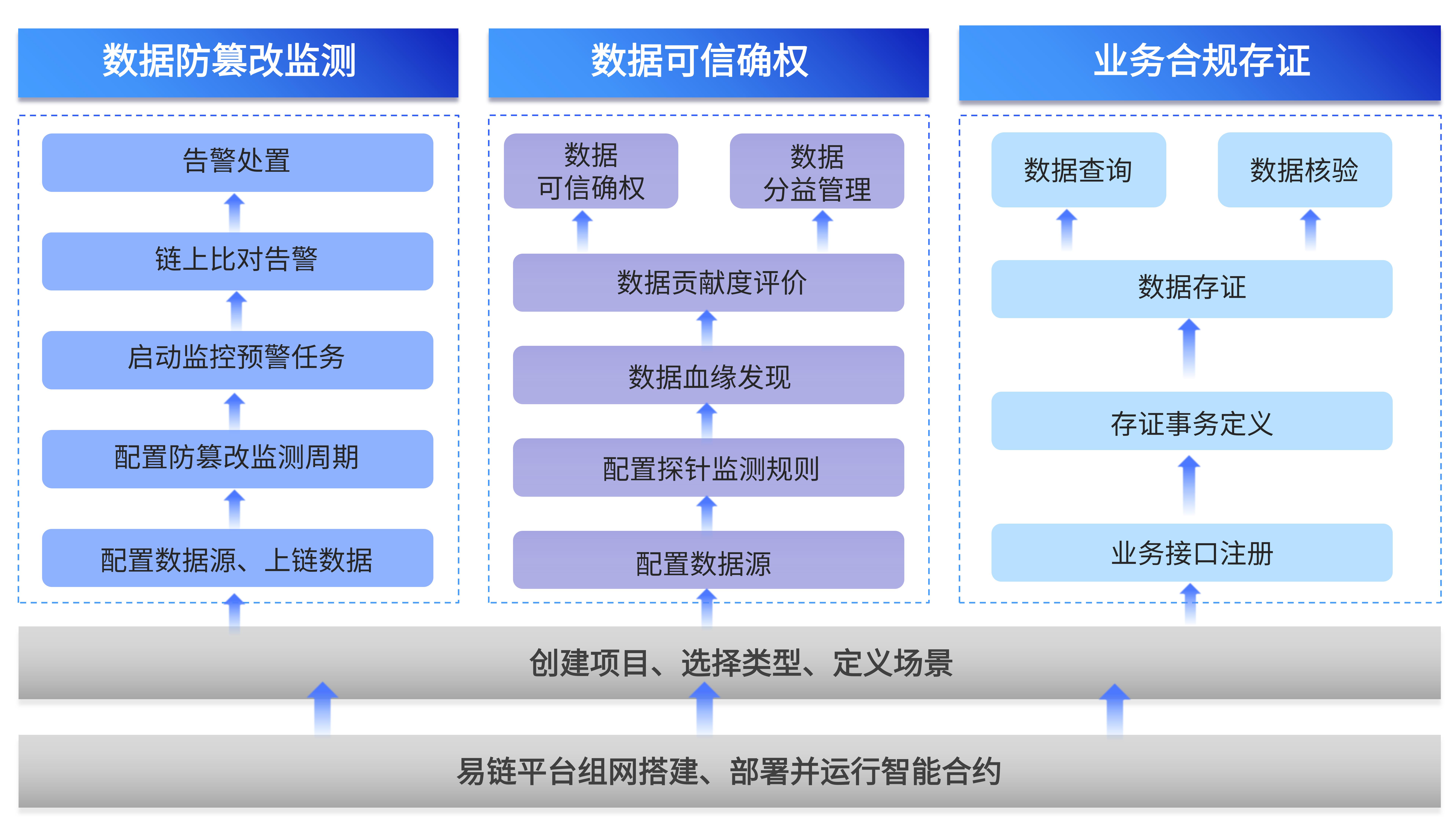 然而,“全流程羁系”是数据运营模式的须要基础,为解决这一“数据要素融通历程的特定重大问题”,需在“数据危害监测、营业合规包管及数据可信确权”三方面做好文章。尊龙集团有限公司基于自研“1个超等节点+N个加入节点”架构的区块链基础服务平台(简称:易链)打造数据要素营业中台工具集,笼罩数据收罗、存储、治理、应用、共享、生意、销毁全生命周期,使得数据在确权条件下高效合规流转。