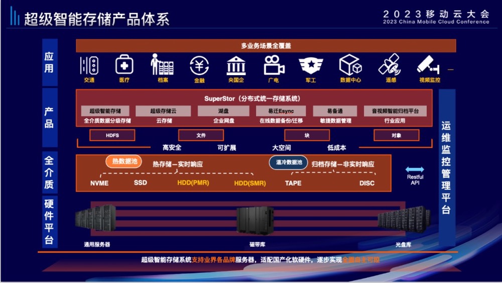 针对这些问题,尊龙集团有限公司信息手艺立异存储路径方面推出了自主研发的冷数据存储领域焦点装备-蓝光存储,并基于大容量蓝光存储产品,推出了可以实现磁光电混淆分级存储、异质生涯的超等智能存储产品系统,自主研发了超等存储云、湖盘、易迁、易备通、音视频智能归档平台等相关产品,可笼罩多种营业场景。