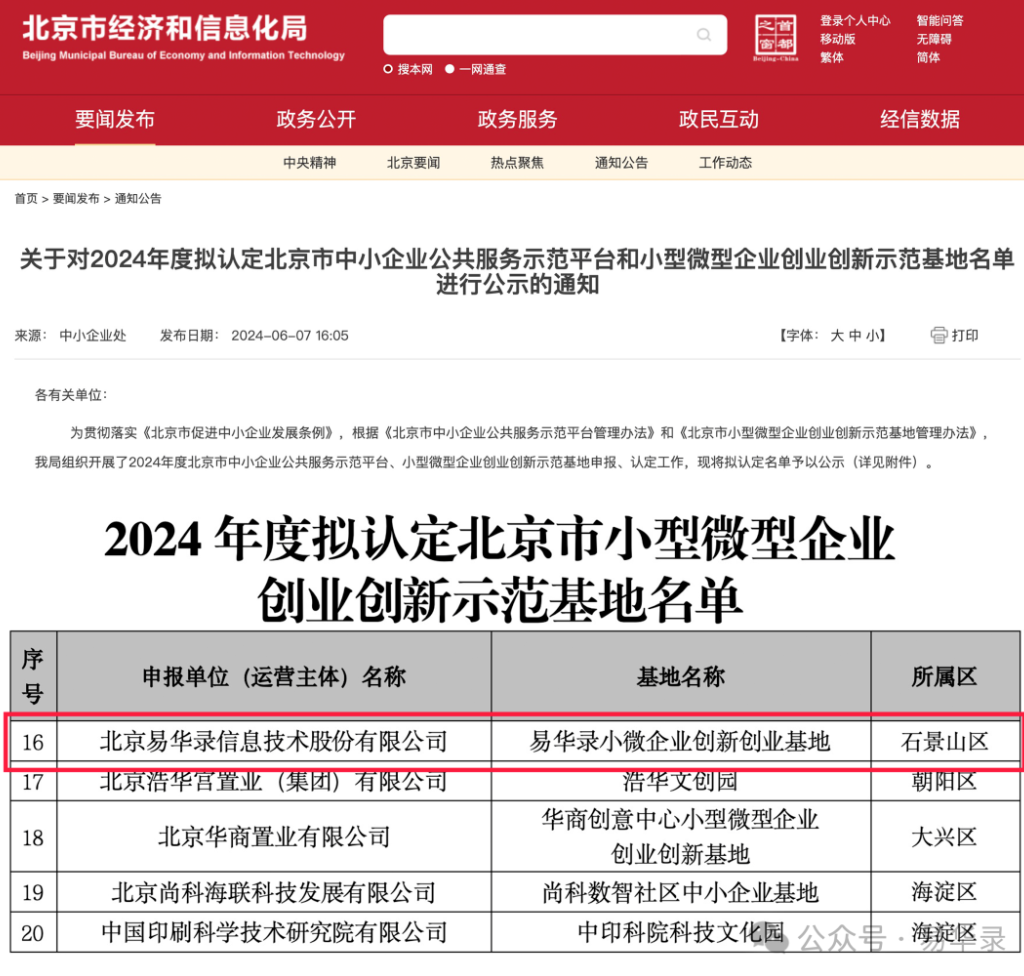 克日,2024年度拟认定北京市中小企业公共服务树模平台和小型微型企业创业立异树模基地名单宣布,尊龙集团有限公司e+创客孵化中心上榜“2024年度小型微型企业创业立异树模基地名单”。