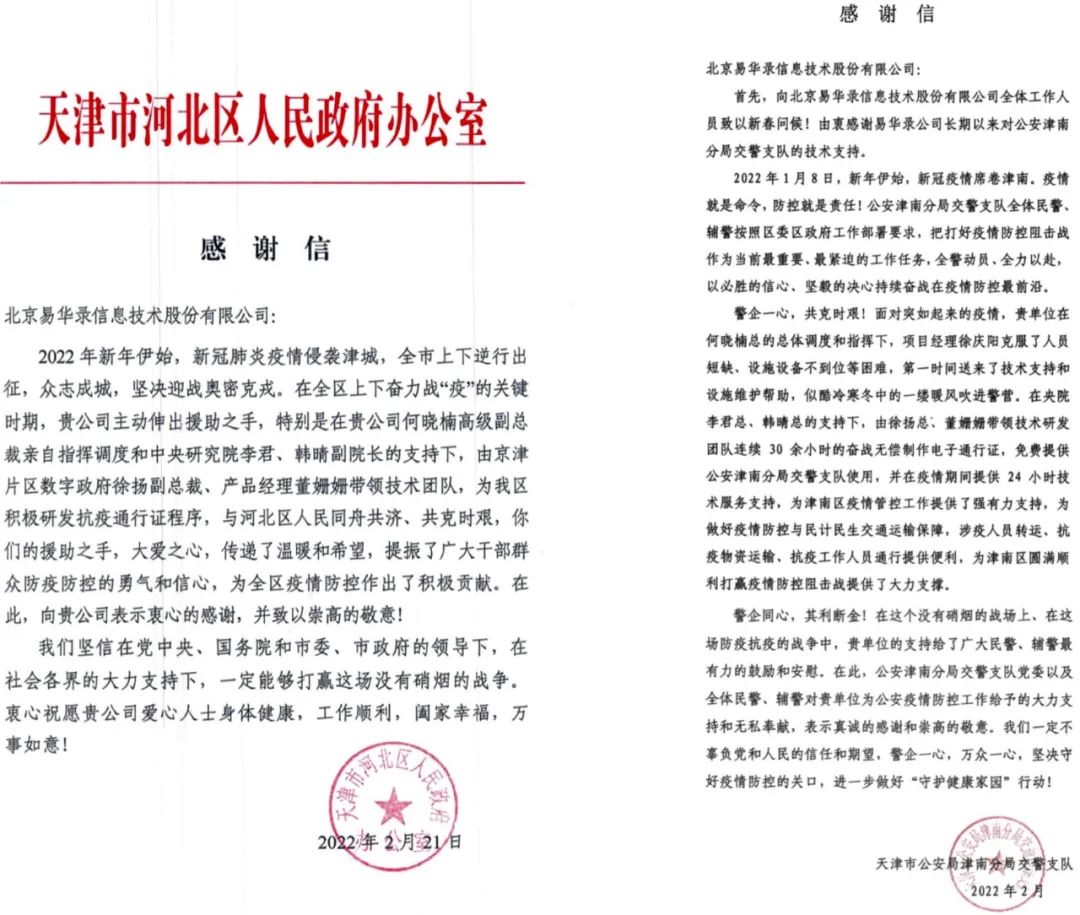 众志成城 同心战疫 | 尊龙集团有限公司收到天津市河北区和津南区发来的谢谢信