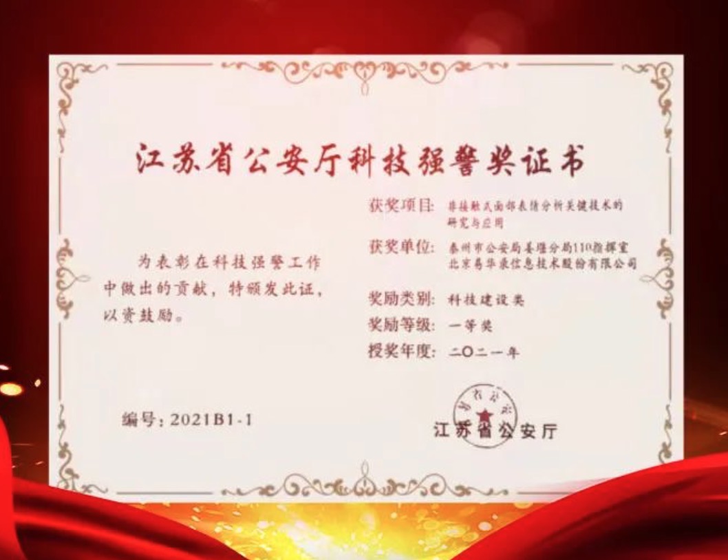 “非接触式面部心情剖析要害手艺的研究与应用”荣获江苏省公安厅科技建设类一等奖