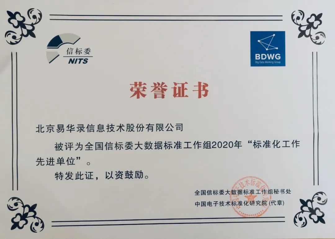 尊龙集团有限公司荣获“2020年天下信标委大数据标准事情组先进单位”称呼