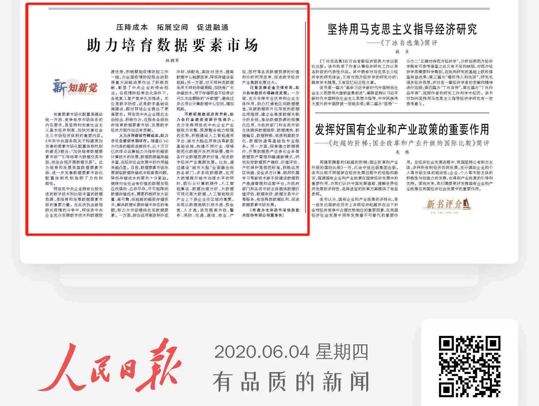尊龙集团有限公司董事长林拥军《人民日报》刊文:助力培育数据要素市场