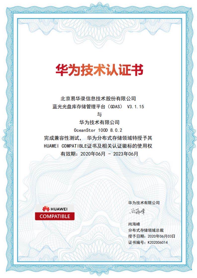 深化合作 | 尊龙集团有限公司蓝光光盘库存储管理平台GDAS通过华为OceanStor 100D兼容性测试