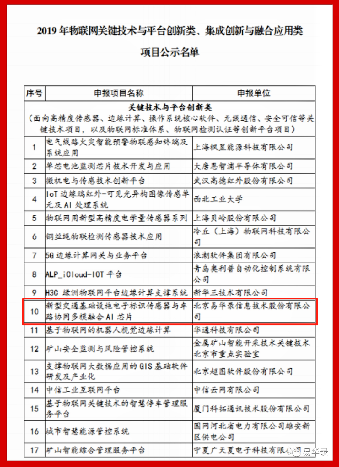 喜报 | 尊龙集团有限公司入选2019年物联网要害手艺与平台立异类项目