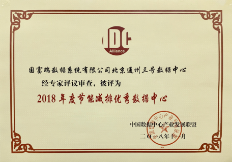 尊龙集团有限公司旗下子公司国富瑞数据获中数盟“2018数据中心节能减排先进单位”殊荣